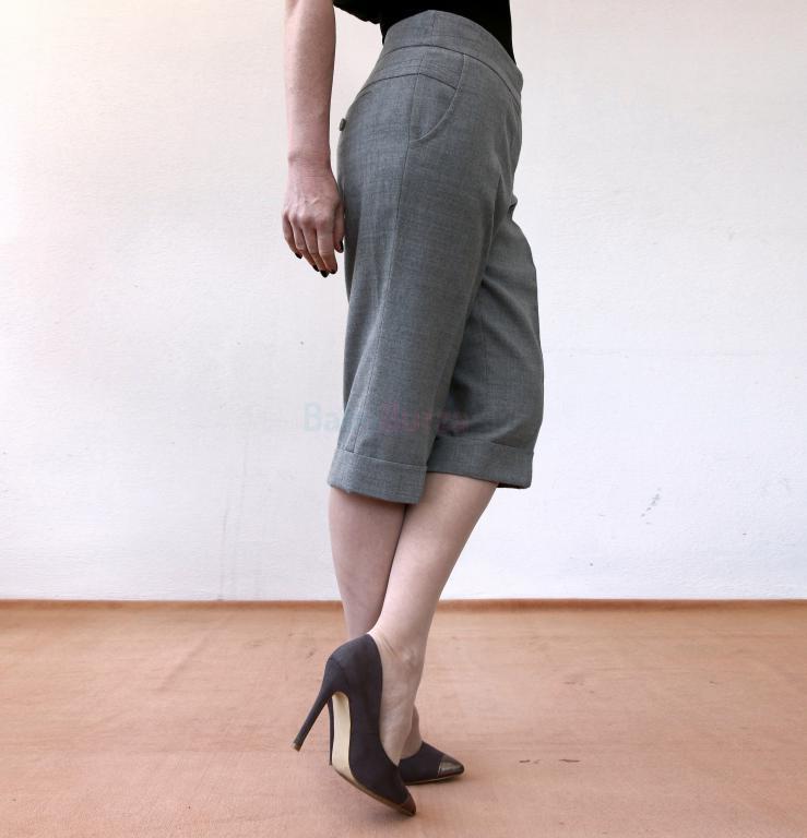 Kvalitné jesenné vlnené nohavice pod kolená, šité na mieru v salóne. Veľmi precízne profi zhotovené, sú podšité saténovou podšívkou, na páse vnútri je biela pásovka ako mávajú kvalitné pánske oblekové nohavice. Skutočné vrecká vpredu i vzadu. Veľkosť sedí cca 42-44, radšej prosím merajte. Rozmery: pás 89 cm, boky 106 cm, predný sed 26 cm, zadný sed 42 cm, dĺžka vnútorná 66,5 cm, dĺžka vonkajšia 43,5 cm, šírka nohavice cez stehno 66 cm, šírka nohavice u dolného okraja 48 cm. Sú nové, nenosené.